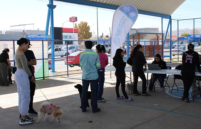 Chihuahua.- Con el objetivo de apoyar directamente a las familias y facilitar el cuidado de sus animales de compañía, el Gobierno Municipal de Chihuahua, a través de la Coordinación de Medio Ambiente y Protección Animal, llevó una jornada gratuita de vacunación, desparasitación y registro a la colonia Riberas de Sacramento, sin costo.