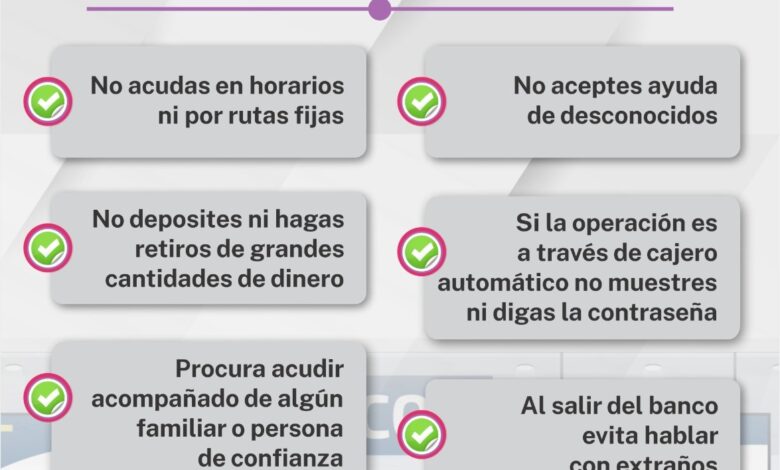 • No traslades para depósito o retiro, grandes cantidades de dinero.
