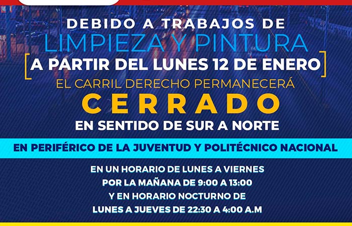 Alerta vial, darán mantenimiento en bajo puente del Periférico de la Juventud y Politécnico Nacional