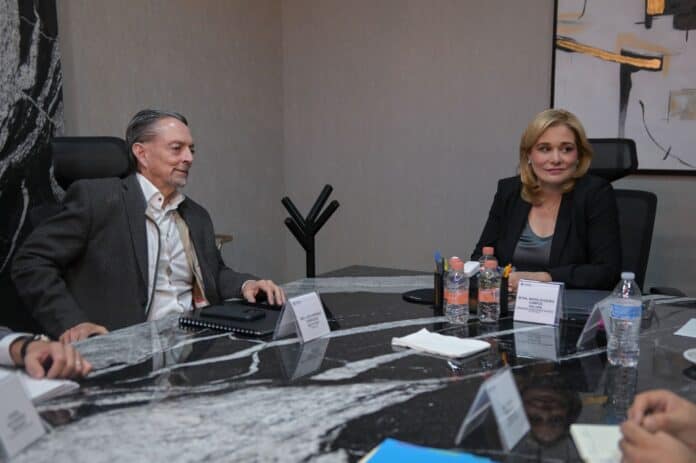 La gobernadora Maru Campos encabezó una reunión con una comitiva del Grupo Ruba, liderada por su presidente del Consejo de Administración, Luis Enrique Terrazas Seyffert, para revisar propuestas de desarrollo industrial y mejoras viales en la ciudad de Chihuahua. El encuentro se llevó a cabo en Palacio de Gobierno con la participación del secretario de Innovación y Desarrollo Económico, Ulises Fernández; el fundador y CEO de Tracende, Daniel Gutiérrez; el inversionista Eduardo Cortina y el coordinador de Gabinete, Jesús Carrillo.