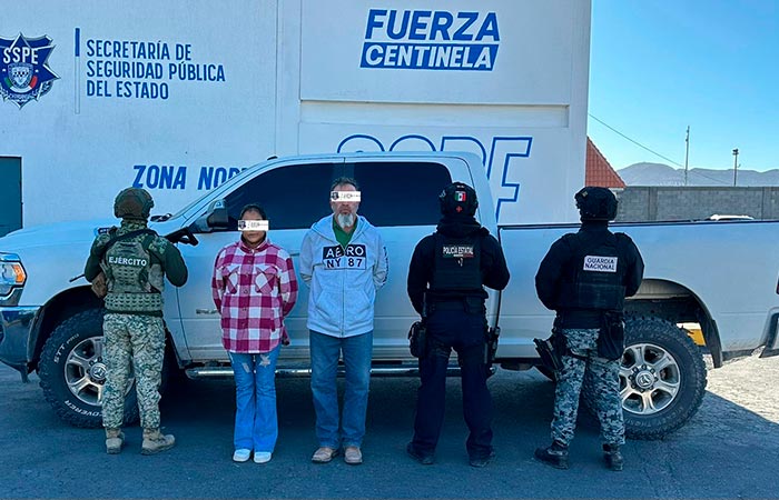 Cd. Juárez.- Elementos de la Policía de Despliegue de la Secretaría de Seguridad Pública del Estado (SSPE), en colaboración interinstitucional con Guardia Nacional y Ejército Mexicano, llevaron a cabo el arresto de José Trinidad S. M., y de Deisy A. G., en Práxedis G. Guerrero, quienes portaban consigo un arma de fuego .45mm, abastecida con 18 cartuchos útiles, además, tenían en posesión un vehículo Dodge Ram que presentaba reporte de robo en los Estados Unidos.