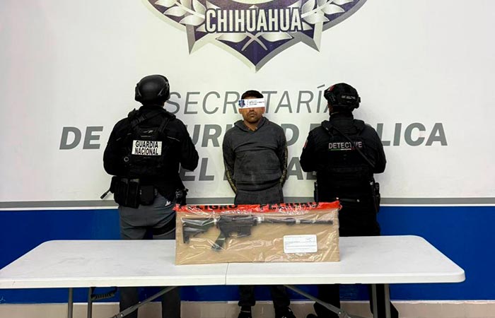 Cd. Juárez.- La Secretaría de Seguridad Pública del Estado (SSPE), en colaboración interinstitucional con la Guardia Nacional, llevó a cabo la detención de un hombre en Ciudad Juárez por violación a la Ley Federal de Armas de Fuego y Explosivos, luego de ser sorprendido en posesión de un arma larga, así como en un vehículo involucrado en el delito de lesiones.