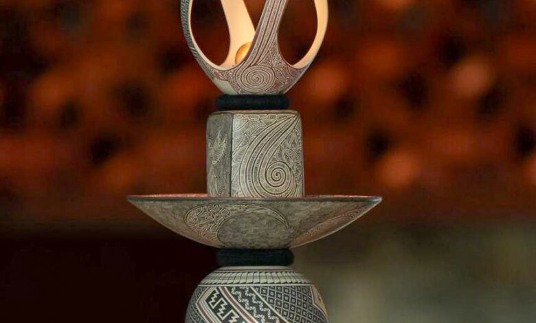 La pieza titulada “Raíz de luz, voz de Mata Ortiz”, está conformada por cinco elementos elaborados con distintas técnicas (dos de cada artesana y una sección central creada en conjunto), que representan la unión entre tradición, diseño contemporáneo e identidad cultural.