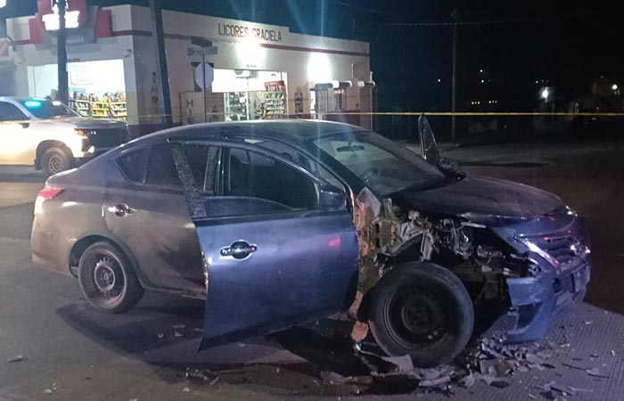 La tarde de ayer martes, los agentes atendieron el reporte de disparos de arma de fuego en la citada población, encontrando en la calle Ejido y Aldama, un automóvil abandonado de la marca Nissan, línea Versa, modelo 2015, color azul, sin placas de circulación.