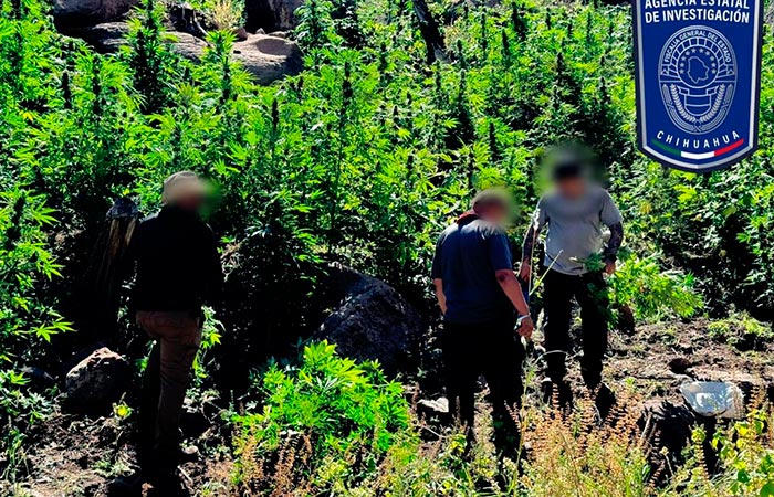 Chihuahua.- En un operativo coordinado entre la Agencia Estatal de Investigación, la Secretaría de la Defensa Nacional a de la SEDENA y la Dirección de Seguridad Pública Municipal, localizaron siete sembradíos de mariguana y tres campamentos, al norte del municipio de Chihuahua.