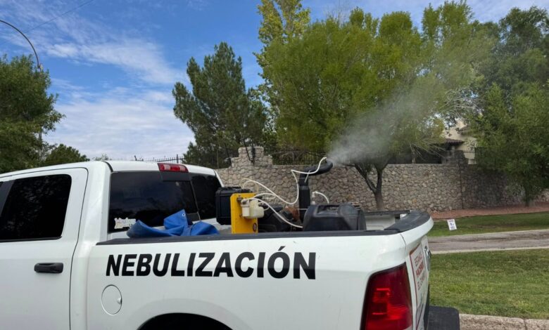 El personal de la Dirección de Ecología continúa con las jornadas de nebulización en distintos sectores de Juárez, con el propósito de acabar con moyotes y mosquitos que aparecen con la humedad.