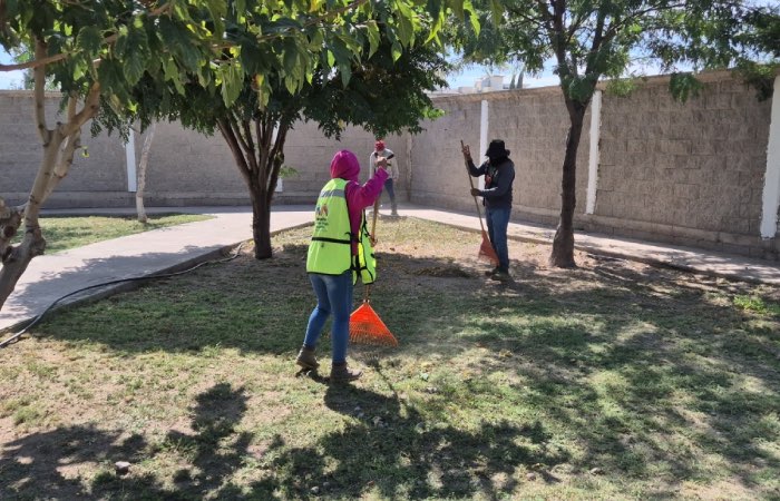 Chihuahua.- La Dirección de Mantenimiento Urbano, realiza limpieza diaria de parques públicos de Chihuahua Capital, con corte y retiro de maleza, limpieza de guarniciones, recolección basura, entre otras.