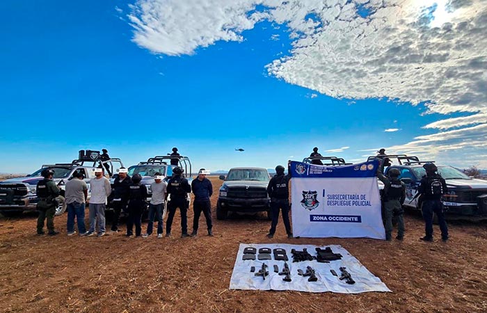 Los hechos se registraron durante la tarde del pasado 26 de diciembre, cuando elementos de la Policía Estatal realizaban recorridos preventivos en una brecha cercana a la comunidad de Buenavista, donde detectaron un vehículo Dodge RAM. Al observar que los ocupantes portaban armas de fuego visibles, se procedió de inmediato a la intervención policial.