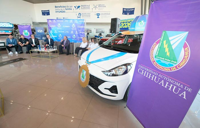 Chihuahua.- La comunidad universitaria celebra una gran noticia: el Grupo Cleber, el conglomerado automotriz más importante del norte del país anunció que obsequiará un automóvil Hyundai i10 modelo 2025 entre los deportistas de la Universidad Autónoma de Chihuahua (UACH) que lograron la medalla de oro en la pasada Universiada Nacional celebrada en Puebla.