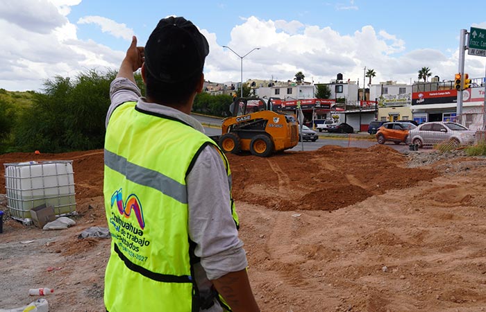 Chihuahua.- La Dirección de Obras Públicas, trabaja en el trayecto vial seguro en Campo Bello y Circuito Universitario, proyecto ganador en la reciente edición del Presupuesto Participativo.