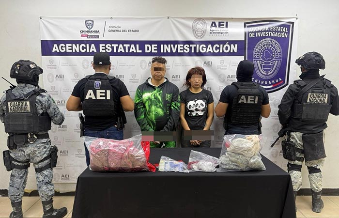 Cd. Juárez.- Derivado del trabajo de inteligencia e investigación de campo para combatir el narcomenudeo en la ciudad, elementos de la Agencia Estatal de Investigación adscritos a la Fiscalía de Distrito Zona Norte, detuvieron a una pareja y aseguraron diversa droga en un cateo.