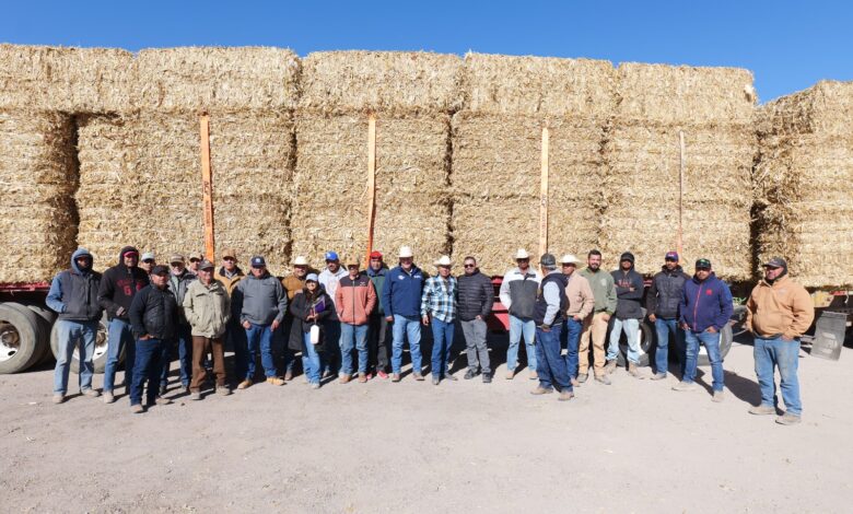 Jiménez, Chihuahua.– El diputado Arturo Zubía, integrante del Grupo Parlamentario del Partido Acción Nacional y representante del Distrito XX, realizó la entrega de las primeras 500 pacas de rastrojo en la Asociación Ganadera Local de Jiménez, en beneficio de los productores ganaderos de la región.