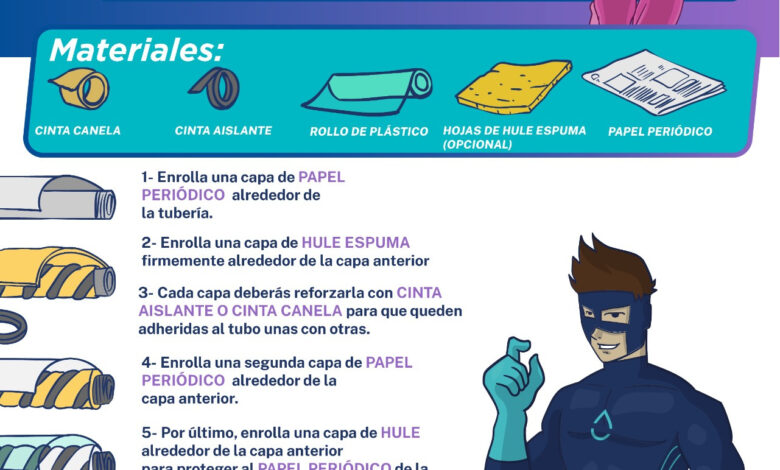 Entre las principales medidas, se exhorta a proteger los ductos ubicados al exterior, como los de los tinacos, mediante el uso de hule espuma, papel periódico o bolsas de plástico, además de realizar un drenado previo para evitar fugas.