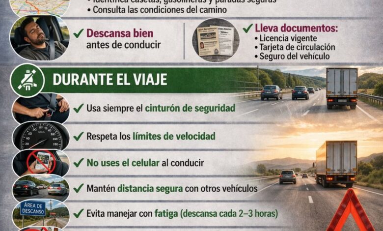 Durante el trayecto, Protección Civil subrayó la importancia de utilizar el cinturón de seguridad en todo momento, respetar los límites de velocidad, evitar el uso del celular al conducir y mantener una distancia segura con otros vehículos. También recomendó hacer pausas cada dos o tres horas para evitar la fatiga y no manejar bajo los efectos del alcohol o medicamentos que causen somnolencia.