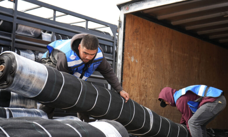 En coordinación con la Unión de Fruticultores (Unifrut) se distribuyeron 14 mallas de 740 metros lineales cada una, que permitirán resguardar los cultivos de manzana ante los riesgos de heladas, granizadas y otras inclemencias del clima propias de la temporada.