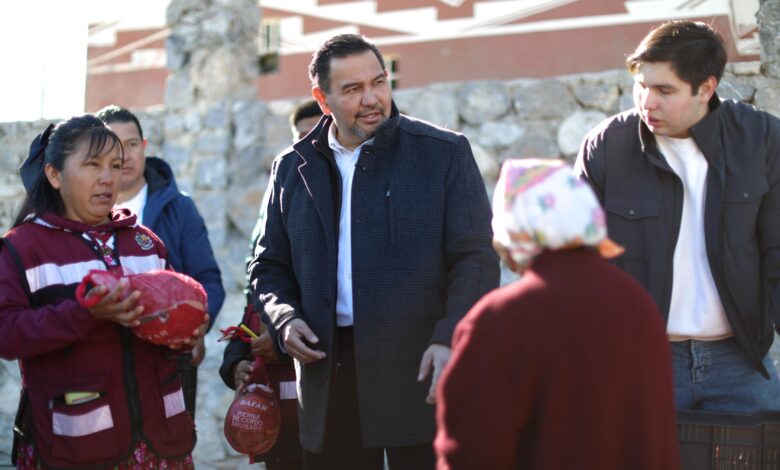 Entrega Presidente Pérez Cuéllar piernas de puerco en colonia Tarahumara