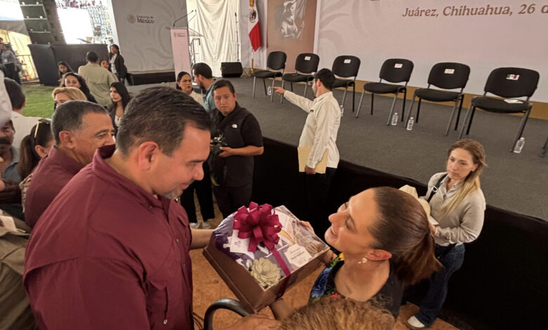 Entregó Cruz Pérez Cuéllar obsequios a la presidenta Claudia Sheinbaum preparados por mujeres indígenas juarenses