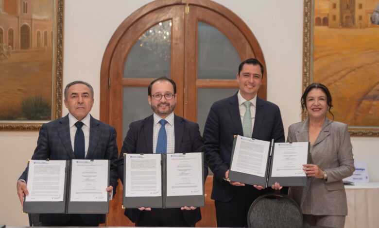 El acuerdo fue suscrito por Octavio Martín Alvídrez Ortega, director general de Fresnillo PLC; Christopher Ávila Mier, director de Relaciones Gubernamentales de Industrias Peñoles; y el secretario Ulises Fernández.