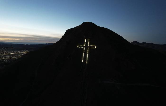 Chihuahua.- Desde la madrugada de hoy lunes 1 de diciembre y hasta finalizar las fechas decembrinas, la cruz ecuménica del Cerro Grande estará iluminada para que las y los chihuahuenses puedan visibilizarla desde distintos puntos de la ciudad.