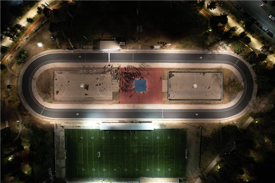 La rehabilitación incluyó la renovación de 3 mil 300 metros cuadrados de carpeta asfáltica, modernización del alumbrado con ocho postes de 12 metros y 24 reflectores, sustitución de malla perimetral, rehabilitación de gradas y techumbre, mejoras en la palapa central, señalización de la pista, colocación de placa de obra y construcción de un tramo de banqueta en el acceso principal.