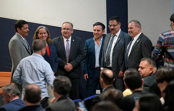 En el presídium estuvieron, además del Rector y el Director de la FI, el Secretario de Obras Públicas de Gobierno del Estado, M.I. Jorge Chánez Peña, quien impartió la conferencia inaugural; el Ing. Juan Carlos Montaño Arreola, Secretario de la Cámara Mexicana de la Industria de la Construcción y el Mtro. Arion Juárez Menchaca, Secretario Académico de la Facultad de Ingeniería.