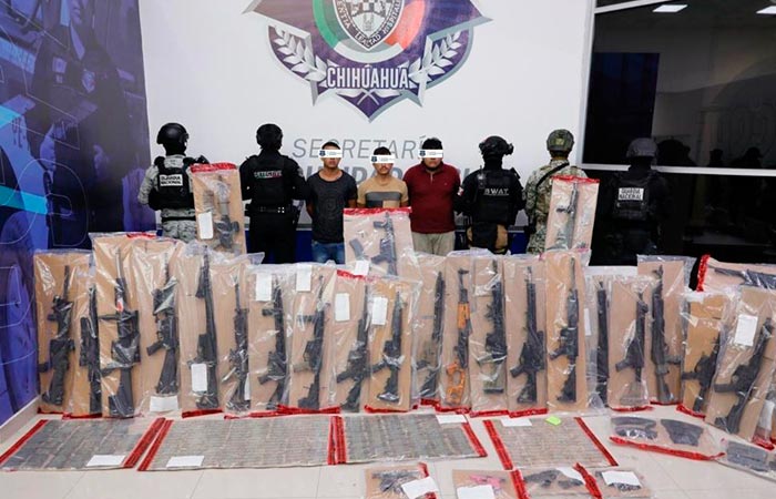 Los hechos se registraron en una vivienda ubicada en el cruce de Diamante y Héroes de Nacozari, donde los agentes tuvieron a la vista a un hombre armado que intentó ingresar al inmueble. En el interior se encontraron más personas armadas, así como una habitación adaptada para almacenar arsenal.