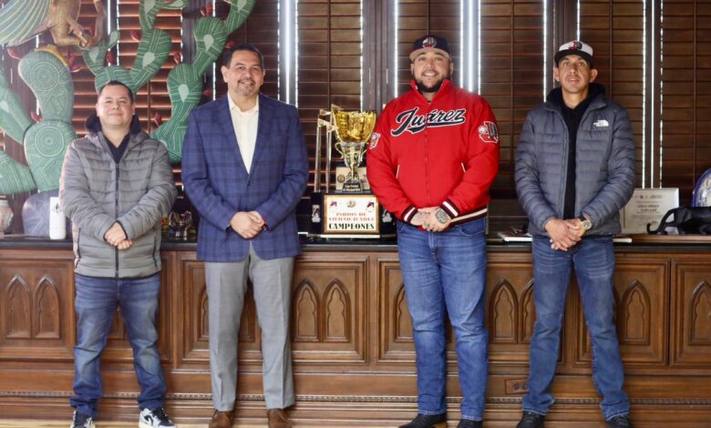 El Presidente Municipal, Cruz Pérez Cuéllar recibió en su despacho a integrantes del equipo de beisbol Indios de Juárez, quienes presentaron sus planes rumbo a la temporada 2026 y refrendaron su compromiso de defender el campeonato de la Liga Estatal de Beisbol, luego de una sequía de 25 años.