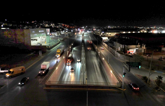 Chihuahua.- El Gobierno Municipal, encabezado por el alcalde Marco Bonilla, continúa cumpliendo su compromiso de brindar mayor seguridad y mejores condiciones de movilidad para las y los ciudadanos, mediante la modernización del alumbrado público en puntos estratégicos de la ciudad.