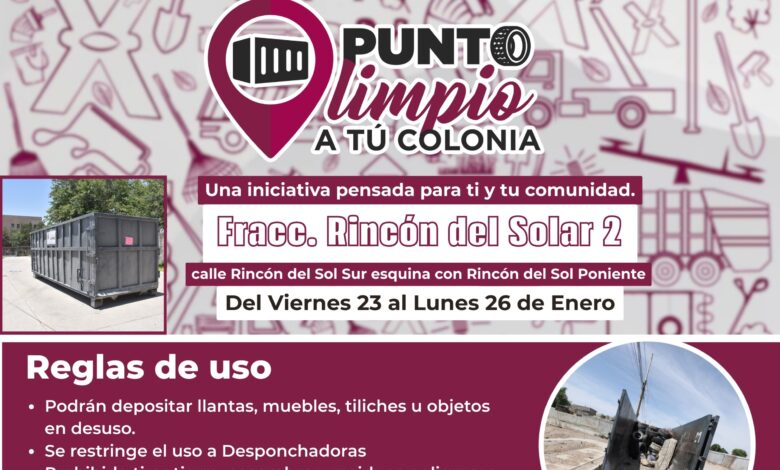 Los Puntos Limpios a tu Colonia están desde el viernes 23 y hasta el lunes 26 de enero en esas áreas de la ciudad.