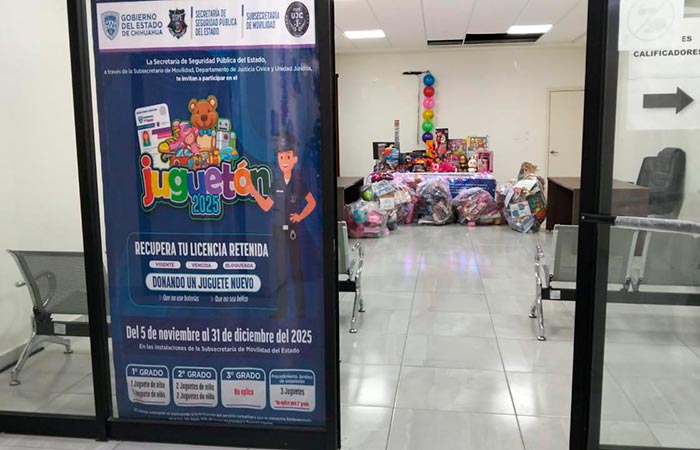 Chihuahua.- Con el objetivo de recolectar juguetes para infancias en situación vulnerable, y que la ciudadanía pueda recuperar licencias retenidas mediante la donación de estos artículos como servicio a la comunidad, la Secretaría de Seguridad Pública del Estado informa que continúa vigente el programa Juguetón 2025.