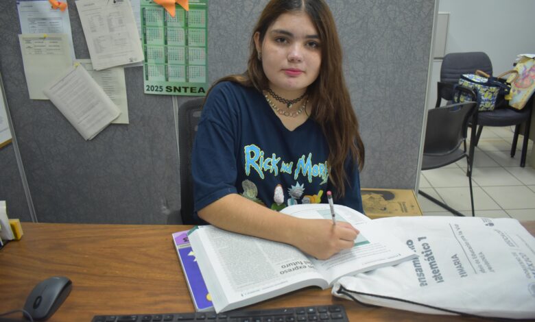 “El tiempo va corriendo”, manifestó la joven de 16 años, al recordar su motivación para inscribirse en el Plantel 6 del Colegio de Bachilleres del Estado de Chihuahua (Cobach), tras tres años de no asistir a una escuela formal.