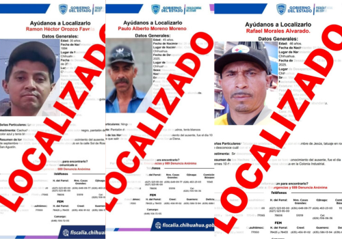 La Unidad de Investigación de Personas Ausentes y/o No Localizadas de la Fiscalía de Distrito Zona Centro (FDZC), encontró sanos y salvos a tres hombres que tenían reporte de ausencia en la ciudad de Chihuahua.