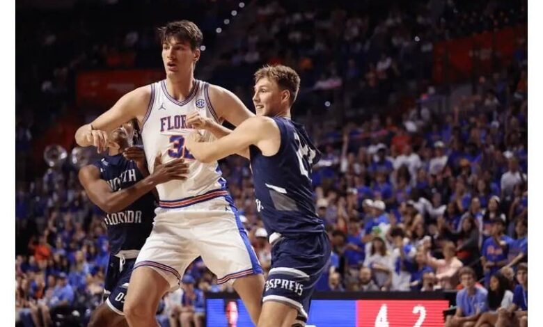 Contar con el jugador universitario más alto en la cancha fue el segundo gran momento para los Gators. Previamente, el equipo desplegó el banderín de campeones de la NCAA que ganaron al vencer a Houston 65-63 en el partido por el campeonato nacional el 7 de abril.