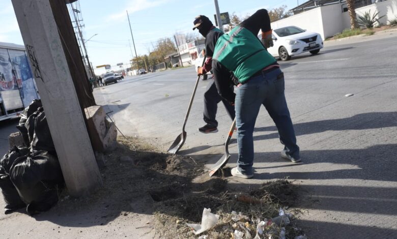 La Dirección de Limpia sigue trabajando en el camellón central de la avenida Ejército Nacional, en el Municipio Libre y posteriormente en la avenida De Las Torres y en el bulevar Óscar Flores.