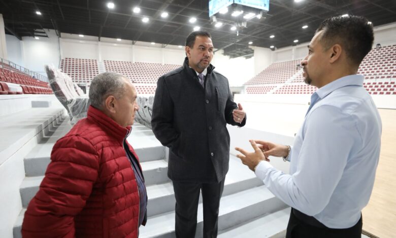 Durante el recorrido se destacó la renovación completa del sistema de iluminación, ahora totalmente LED, así como la instalación de nuevos graderíos y butacas generales, preferentes y VIP. Además, se modernizó la duela, se colocaron canastos de nivel profesional y se implementó un nuevo sistema de sonido.