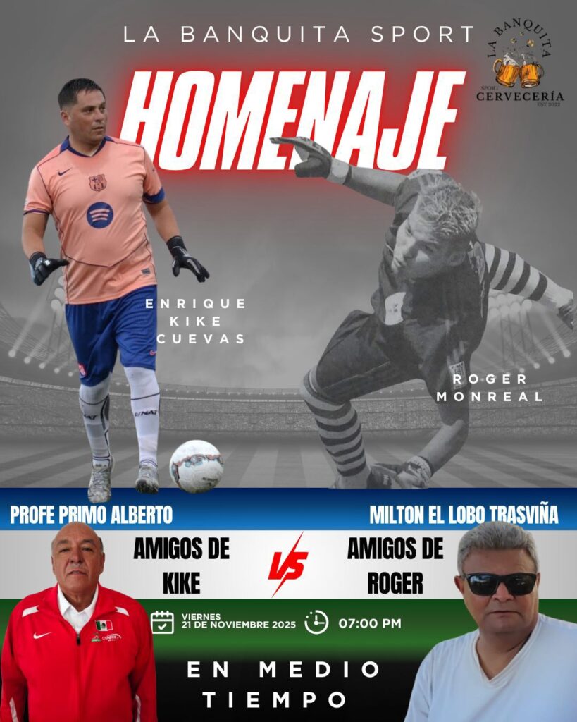 Como parte del evento, se disputará un partido amistoso entre Amigos de Kike Cuevas y Amigos de Roger Monreal, programado para el viernes 21 a las 7 de la tarde. El encuentro reunirá a jugadores cercanos a los homenajeados, reviviendo anécdotas, camaradería y momentos que definieron una época en el futbol local.