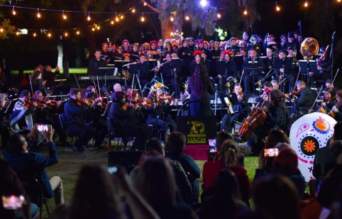 Como cierre con broche de oro, la Orquesta Sinfónica y el Coro Sinfónico de la UACH (OSUACH) ofrecieron el majestuoso concierto «Celebra el Día de Muertos», bajo la dirección invitada de la Mtra. Claudia Rico Arenívar, interpretando obras de R. Lóman, S. Ramírez, C. M. Alcalá, entre otros reconocidos compositores, en un espectáculo que conmovió al público con su emotividad y excelencia musical.