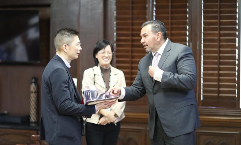 Por el apoyo que ha brindado el Presidente Municipal, Cruz Pérez Cuéllar en mejoras para los trabajadores de Pegatron México, la directora del departamento de administración de dicha empresa, Ileana Wong, y Ye Yu Jou, gerente general, acudieron al despacho del alcalde para expresarle su agradecimiento.