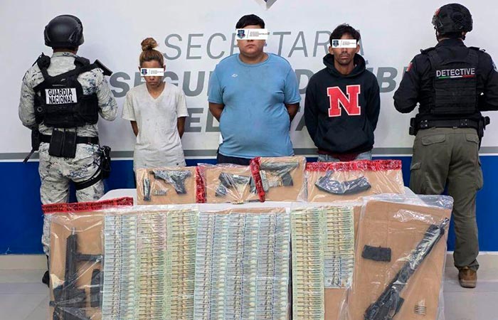 Durante la aproximación, el sujeto apuntó con un arma a los policías, por lo que se aplicaron los protocolos de aseguramiento. En el interior se detuvo a Santos Omar “N”, de 31 años; Octavio “N”, de 22; y a Soledad “N”, de 33, quien portaba un arma corta y un fajo de dólares estadounidenses.