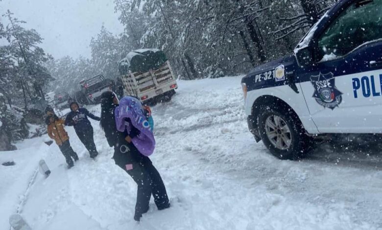 El hecho se registró durante la mañana del 24 de enero, sobre la carretera que comunica de Hidalgo del Parral hacia Guadalupe y Calvo, donde los agentes estatales localizaron una camioneta detenida a un costado del camino, imposibilitada para continuar su marcha por la acumulación de nieve en la zona.