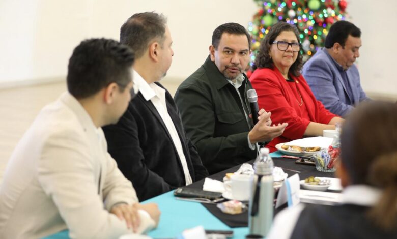 El Presidente Municipal, Cruz Pérez Cuéllar, se reunió este viernes con miembros del Consejo Nacional de la Industria Maquiladora y Manufacturera de Exportación en Ciudad Juárez, para conocer las condiciones de las empresas locales posterior a los cierres en carreteras y puentes internacionales por las protestas de campesinos.